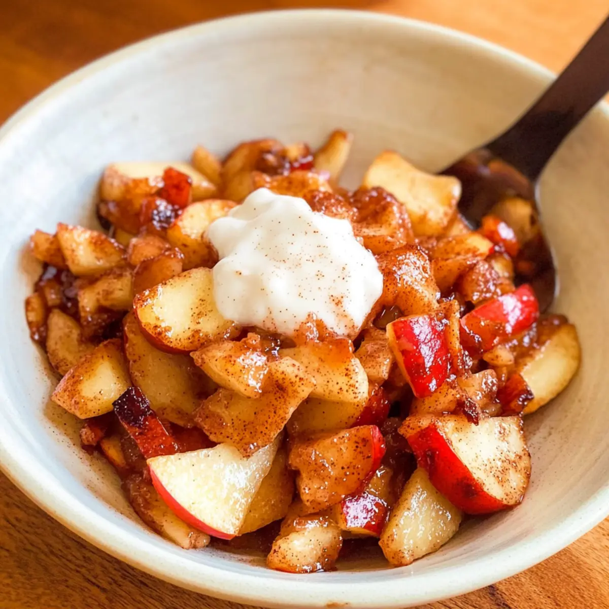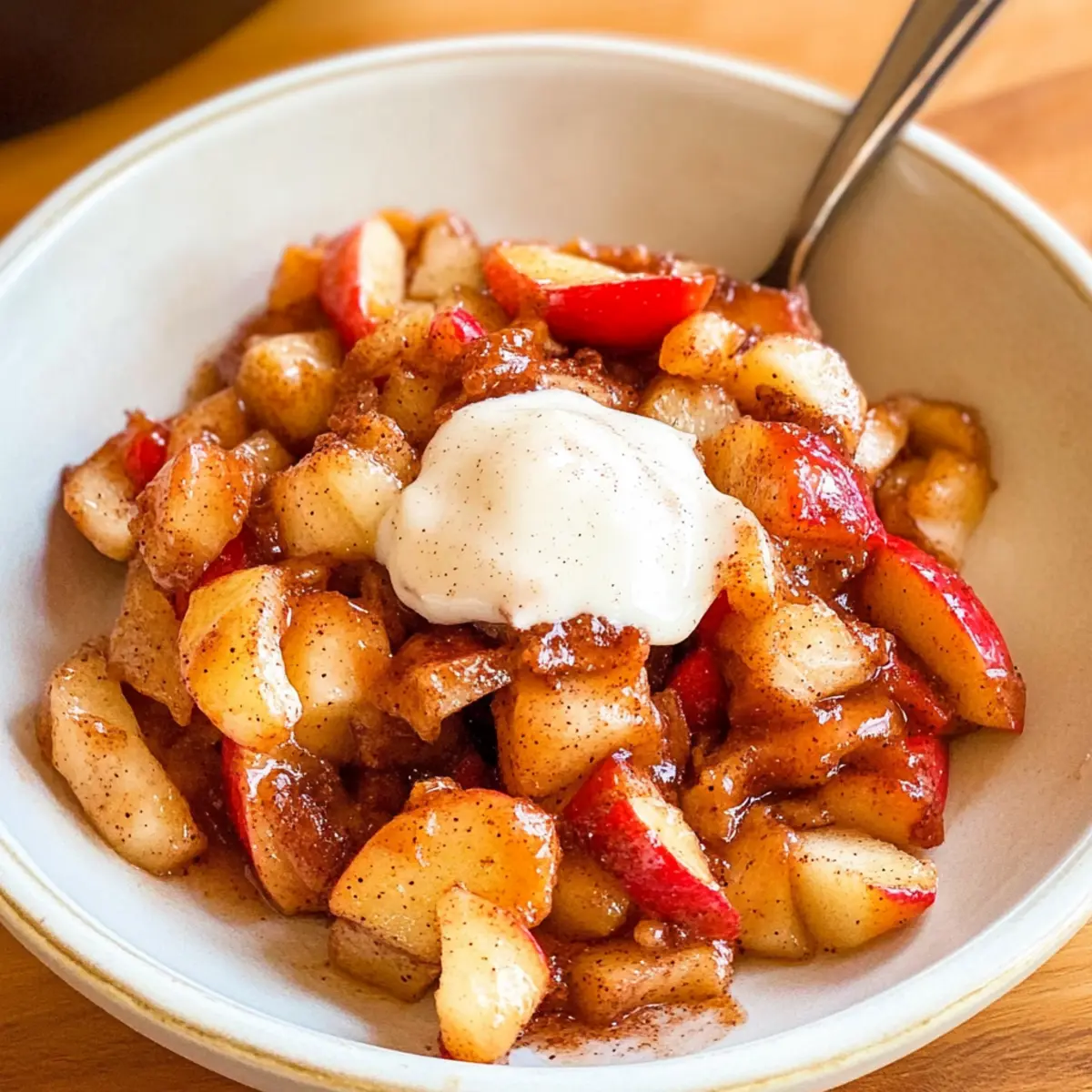 Vanilla Ice Cream: Serve the warm apples over a scoop of creamy vanilla or coconut ice cream, creating a heavenly contrast that’s hard to resist.