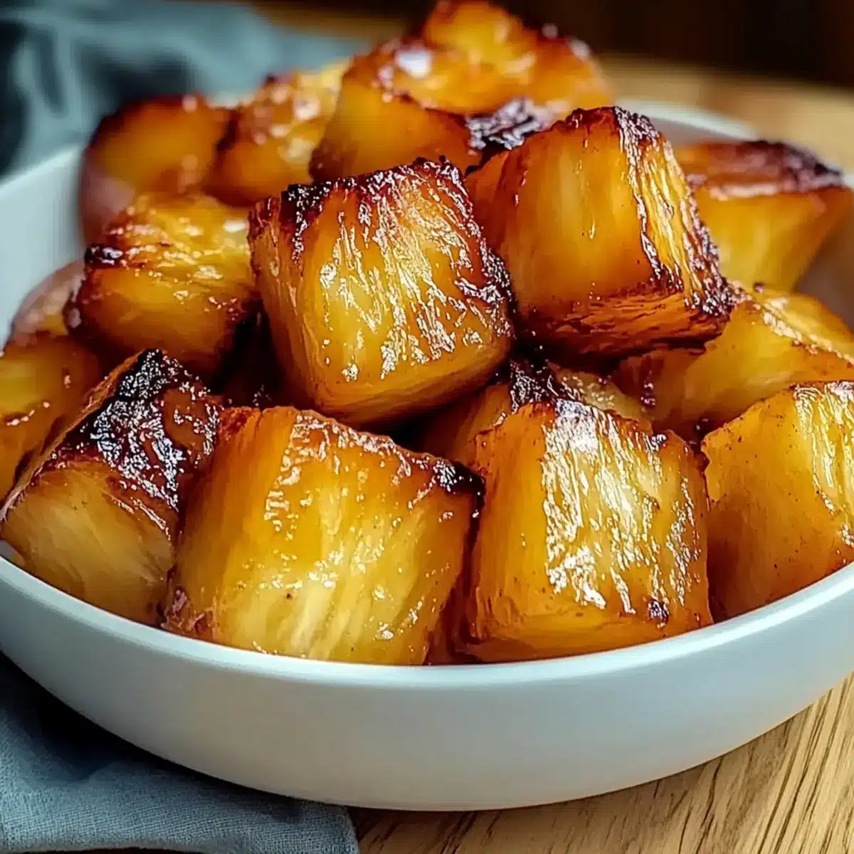 - Gently toss the prepared pineapple pieces in the glaze until coated.