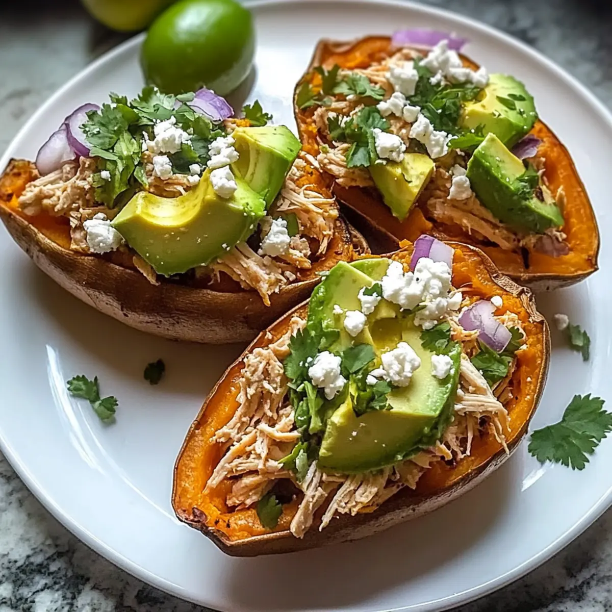 You can store your Chicken Avocado Stuffed Sweet Potatoes in an airtight container in the fridge for up to 3 days. This method keeps the flavors intact while allowing for easy reheating throughout the week. Just remember, for optimal taste, it’s best to consume the filling fresh!