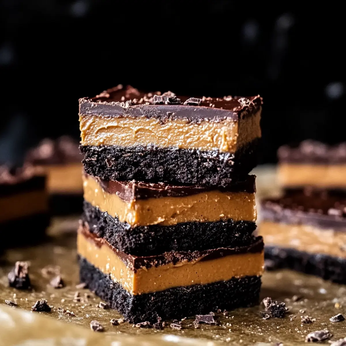 Decadent Layers: Each bite showcases a heavenly combination of crunchy Oreo base, creamy peanut butter middle, and smooth chocolate topping.
