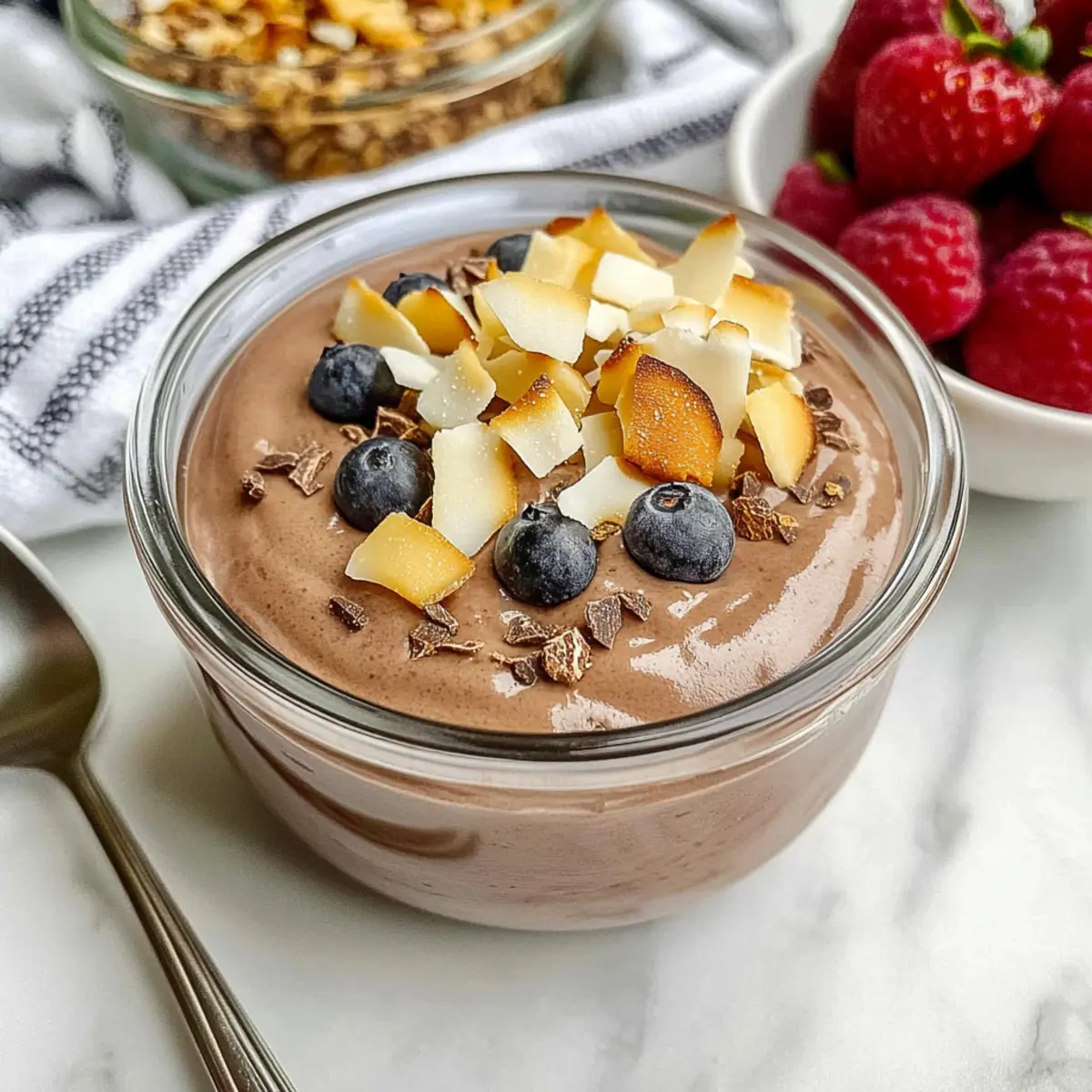 Fresh Berries: Strawberries or blueberries add a splash of color and a burst of natural sweetness that enhance the mocha flavor beautifully.