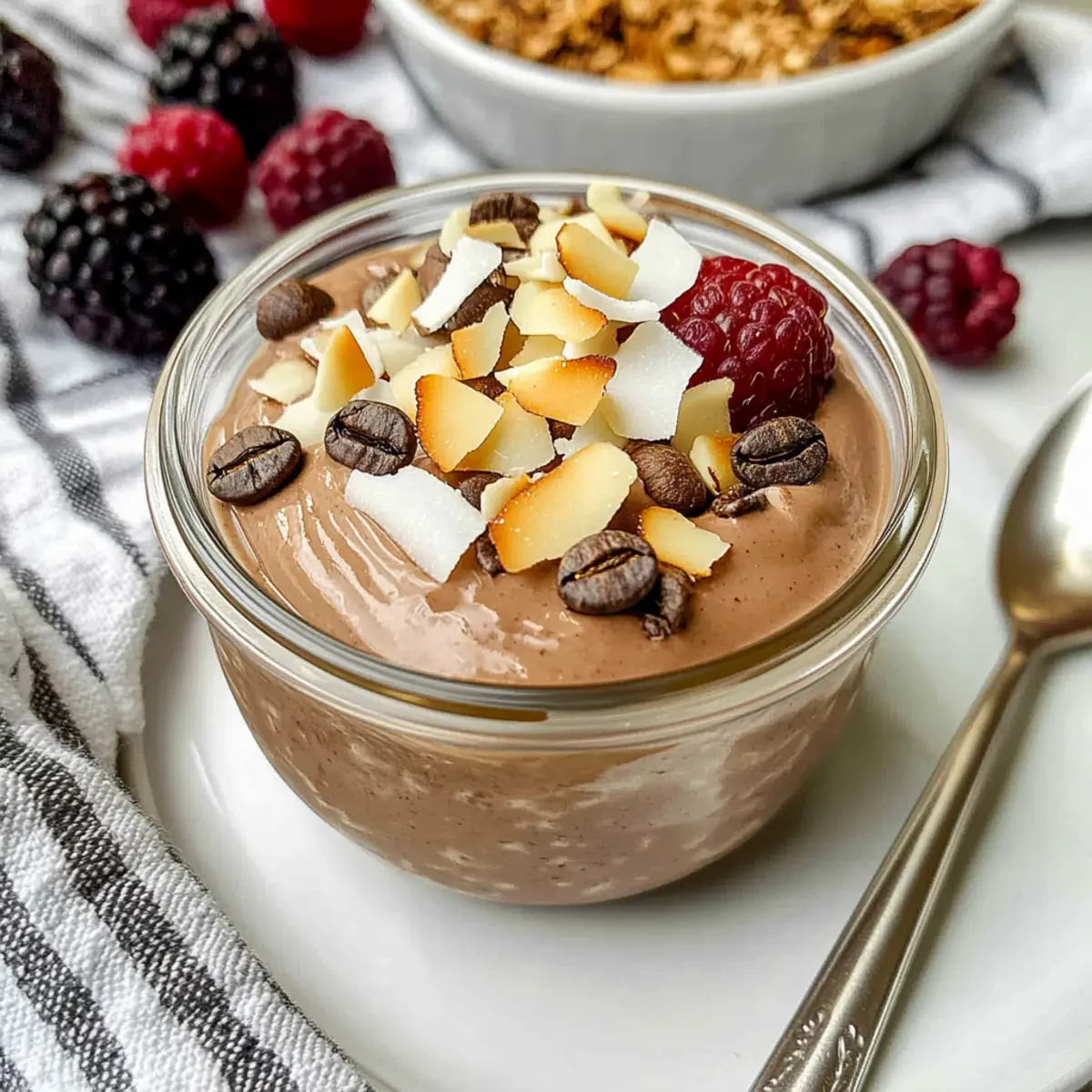 Preparing your Mocha Coffee Yogurt ahead of time is a game-changer for busy mornings! You can mix the yogurt base (step 1 and step 2) and store it in an airtight container in the refrigerator for up to 3 days. This allows the flavors to meld together beautifully, creating a richer taste. When you’re ready to enjoy, just stir the yogurt well to bring it back to its creamy consistency, as some separation may occur. Finally, add your favorite toppings just before serving for that fresh crunch. This simple make-ahead method ensures you have a nutritious breakfast option ready in minutes, saving you valuable time during hectic weekdays!
