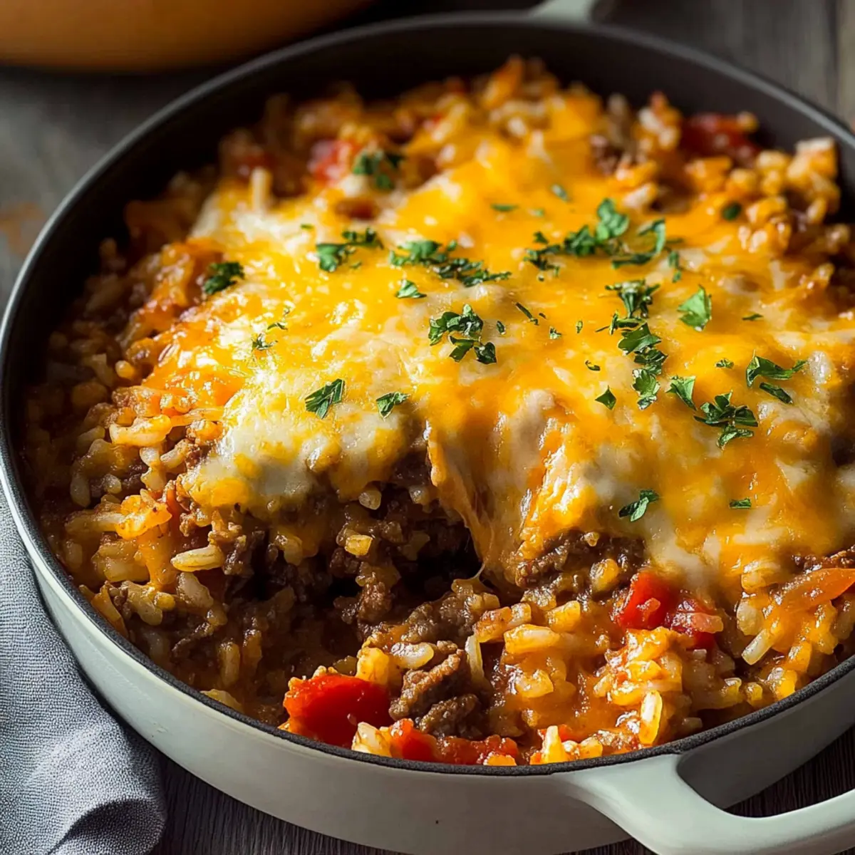Comforting Meal: This Cozy Beef and Rice Casserole packs all the heartiness of a family favorite into one simple dish.