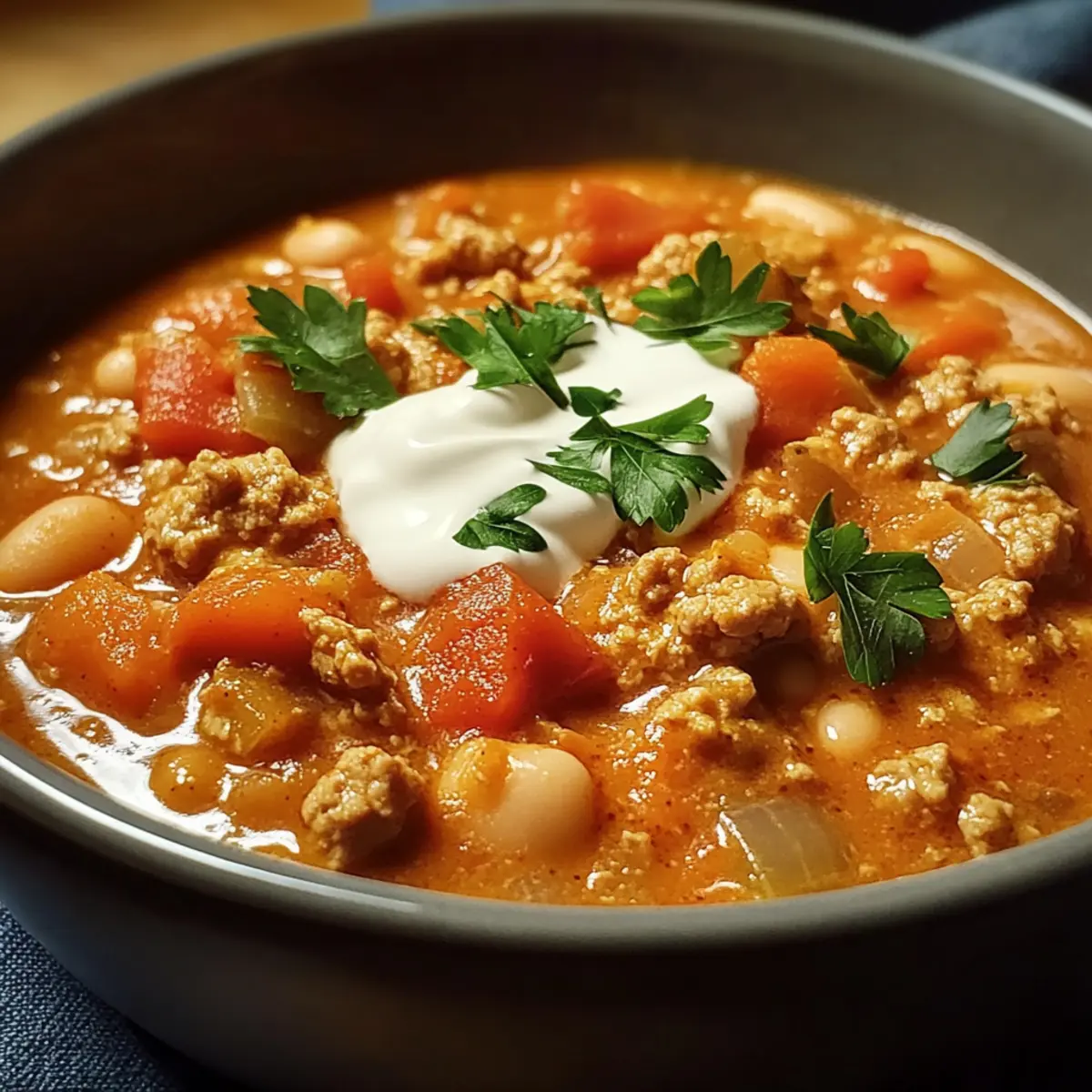 Comforting Warmth: This Creamy Turkey Pumpkin Chili is like a warm hug on a cool autumn evening, combining seasonal flavors that evoke the essence of fall.