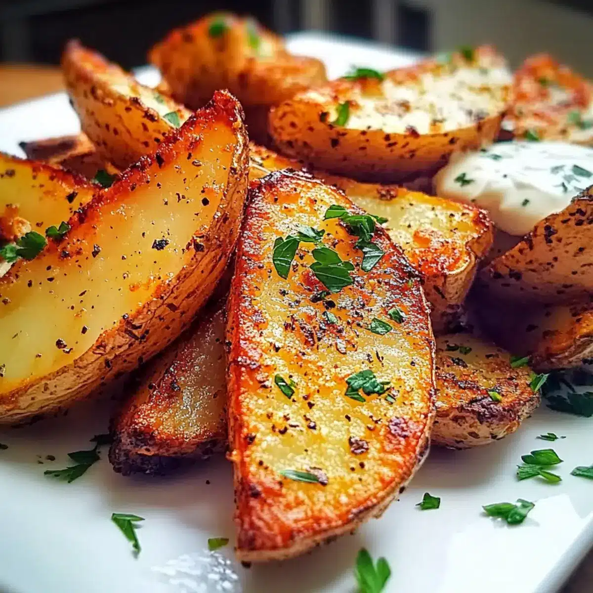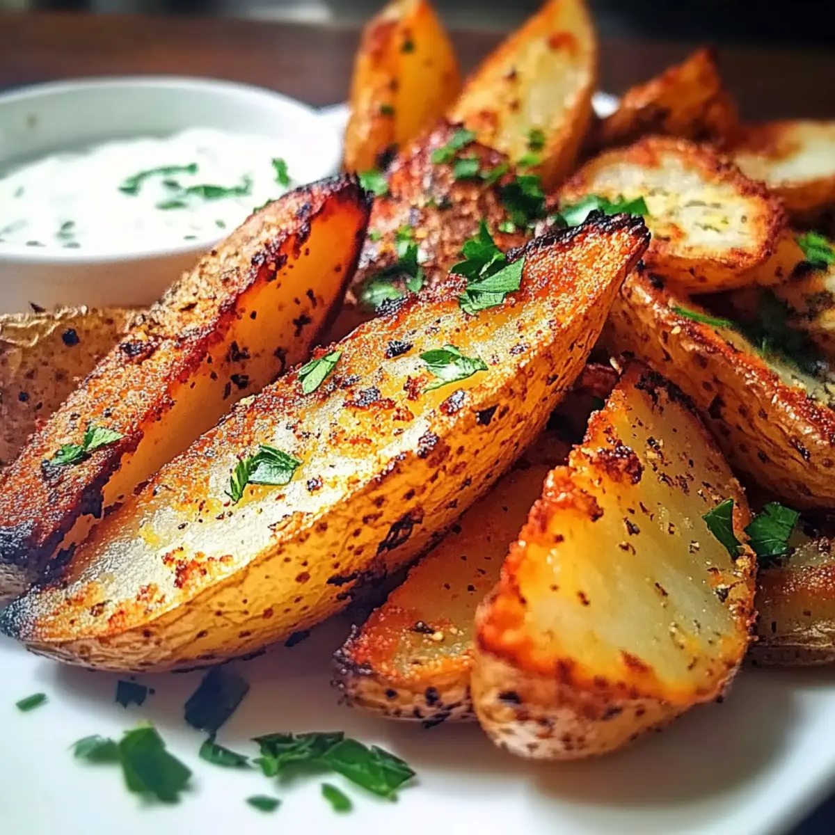 Vegan Dipping Sauce: Combine your wedges with a vegan garlic aioli or a plant-based ranch dressing for a creamy accompaniment. This adds a refreshing dimension to your crispy snack!