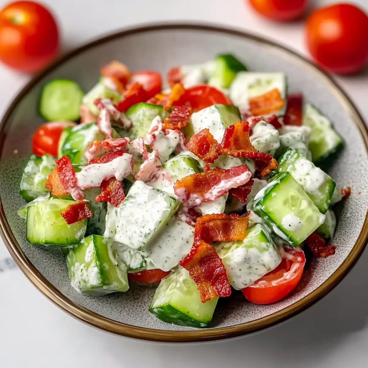 On a sweltering summer afternoon, I found myself rummaging through my fridge, desperately seeking something light and invigorating. That’s when I unearthed a treasure—a handful of fresh cucumbers and some crispy bacon. Thus, my Crunchy Cucumber Salad with Bacon was born! This easy-to-make salad blends the refreshing crunch of cucumbers with smoky bacon, all drizzled in a creamy ranch dressing that screams summer. It’s a delightful duo—perfect for impressing guests at potlucks or whipping up on busy weeknights when you crave something satisfying yet simple. Not only does this dish offer a burst of coolness, but it’s also a great way to incorporate more veggies into your meals. Curious to learn how to make this vibrant salad come to life? Let’s dive in!