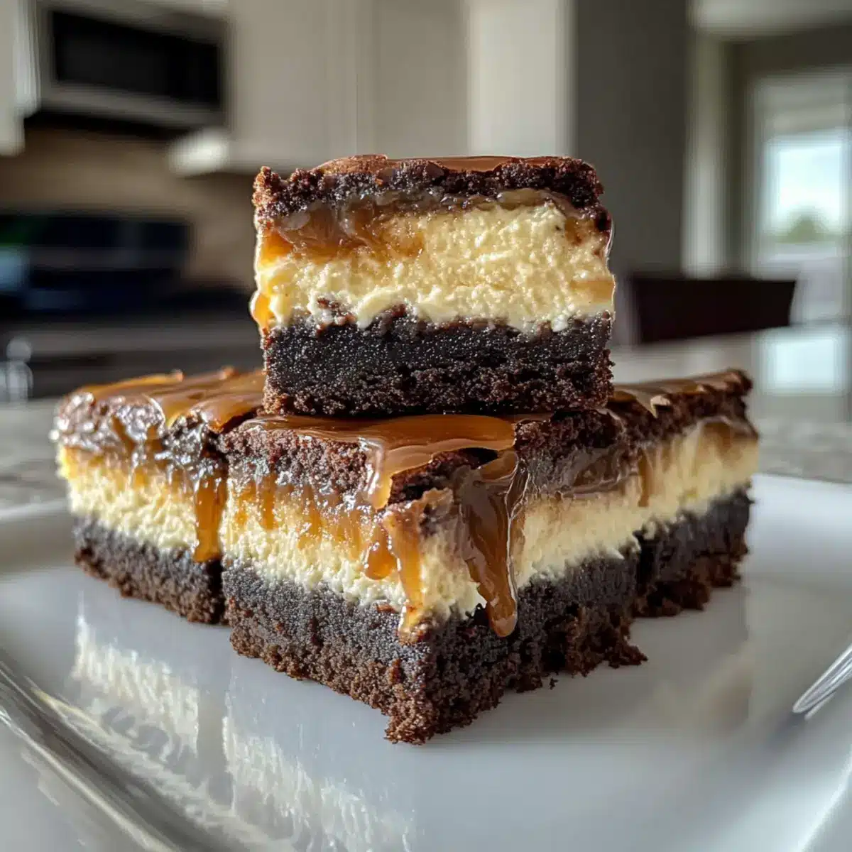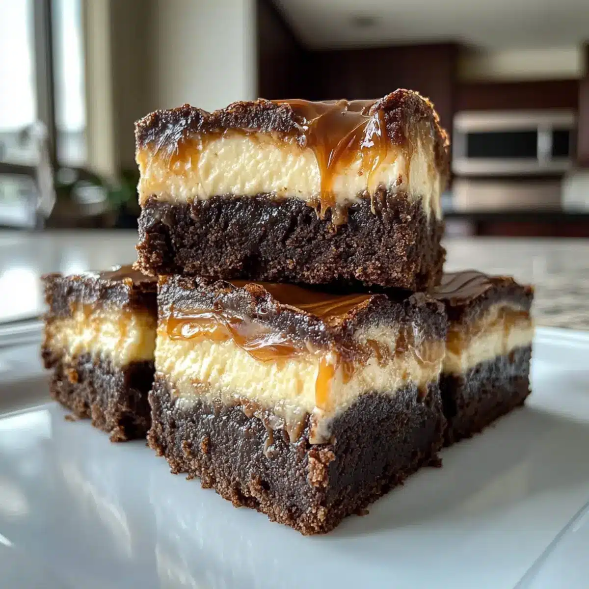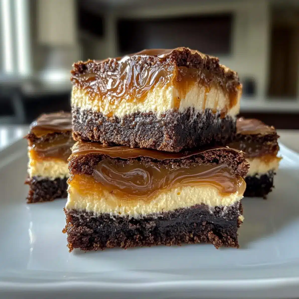 Cheesecake Creaminess: Substitute half of the cream cheese with Greek yogurt for a lighter version of the cheesecake layer. The tanginess of yogurt would balance beautifully with the sweetness of the caramel.