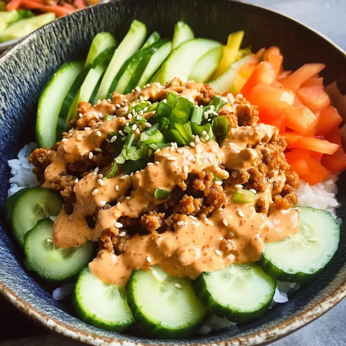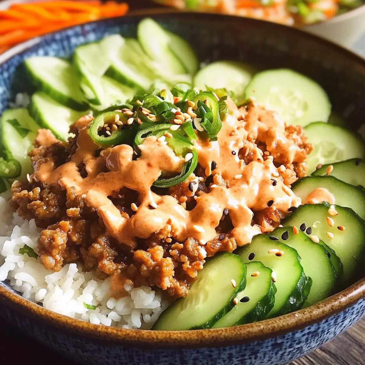 Absolutely! To adapt the Ground Turkey Rice Bowls to be vegan, simply replace the ground turkey with crumbled tofu or tempeh for a protein boost. For the Bang Bang Sauce, you can use a vegan mayo and maple syrup instead of honey. This ensures you capture all the creamy, spicy goodness while keeping it plant-based!