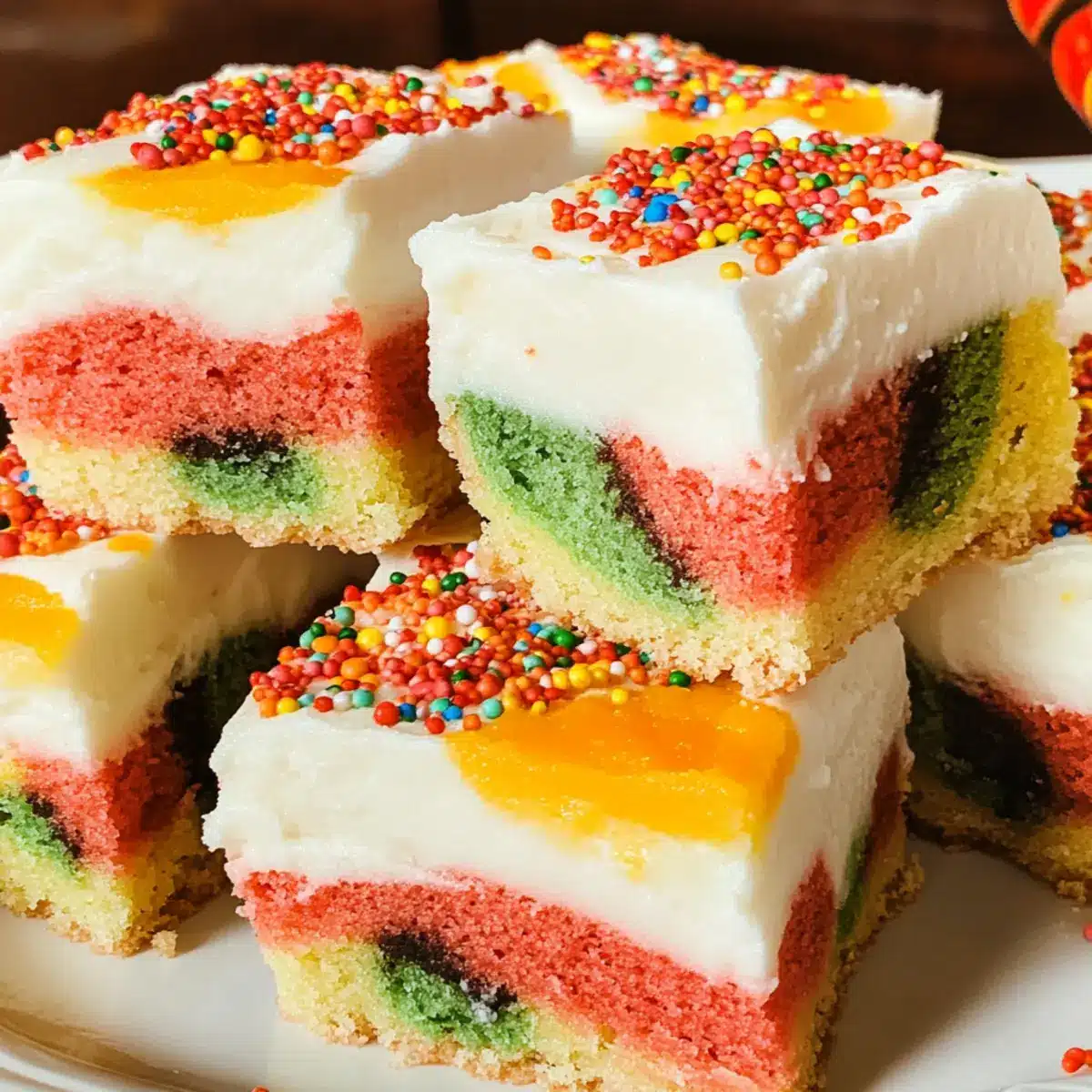 To enhance your Harvest Marble Sugar Cookie Bars, sprinkle a variety of fall-themed sprinkles on top of the frosted surface. This adds not only an extra layer of sweetness but also a festive touch that will elevate these bars for any Thanksgiving or fall gathering. Once decorated, cut into squares and serve to amaze your guests!