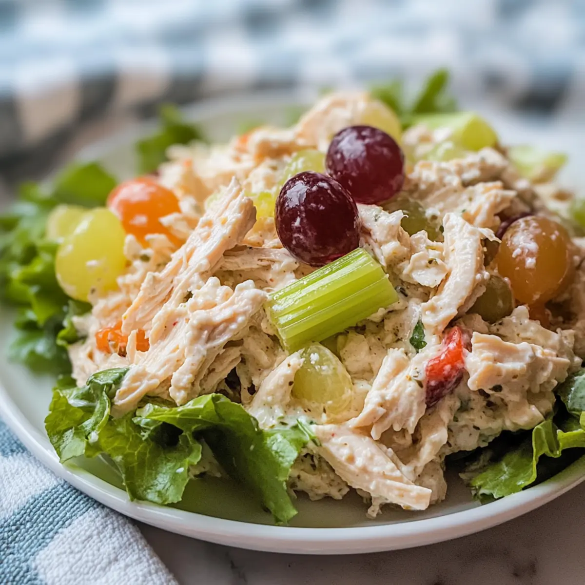 No problem at all! If your salad is a bit dry, try adding a splash more mayonnaise or a dollop of Greek yogurt to create extra creaminess. Conversely, if it feels too wet, you can add in more shredded chicken or mix in some chopped celery to balance the moisture. Tasting and adjusting is always encouraged!