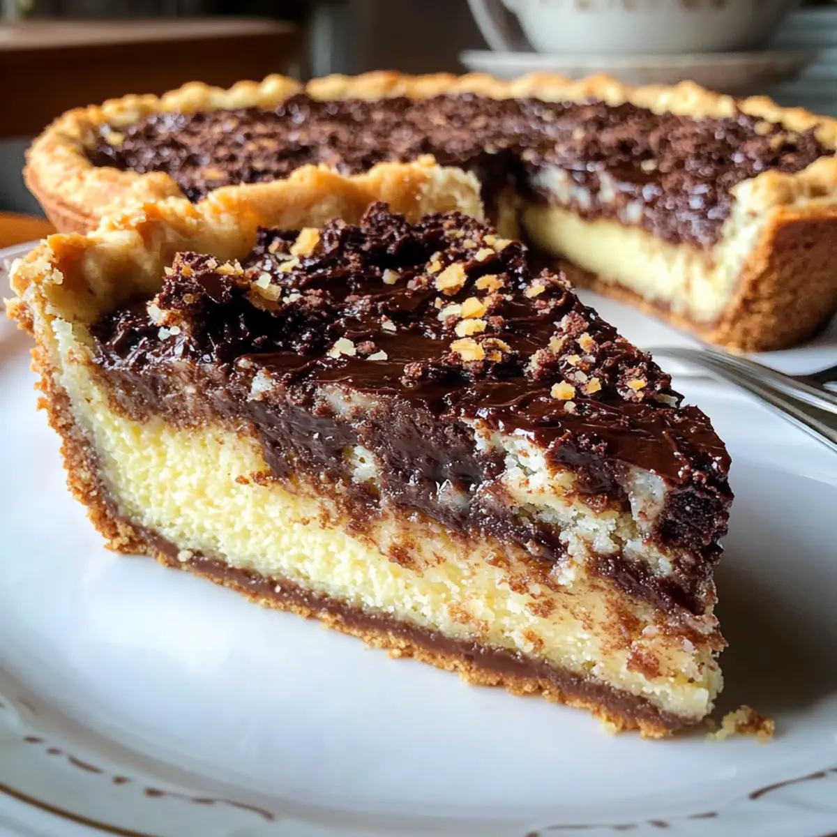 Appealing textures: The flaky crust, fluffy cake, and rich fudge create a heavenly balance of textures that you won’t soon forget.