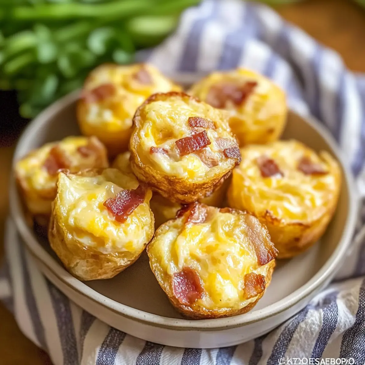 Flavorful, each bite bursts with delightful flavors from crispy bacon and melty cheese, making breakfast exciting. Quick Prep means you can whip these up in a snap, perfect for busy mornings. Diet-Friendly with a low carb count, they fit seamlessly into a keto lifestyle. Serve them warm with your favorite dip for an unforgettable brunch experience. Versatile enough to customize—swap bacon for veggies or try different cheeses! These Keto Bacon Egg and Cheese Bites are sure to become a family favorite, just like my Pomegranate Feta Cheese dip or Air Fryer Ranch Crusted Chicken Bites that delight with every bite.