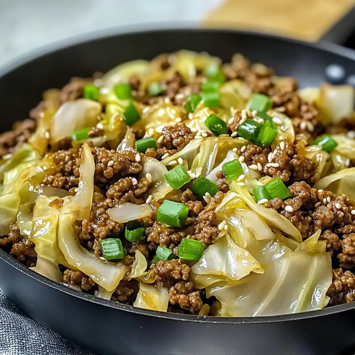 Low-Carb Mongolian Ground Beef and Cabbage in One Skillet
