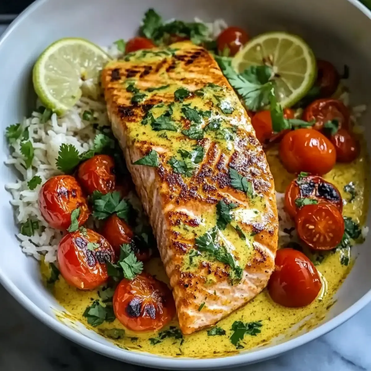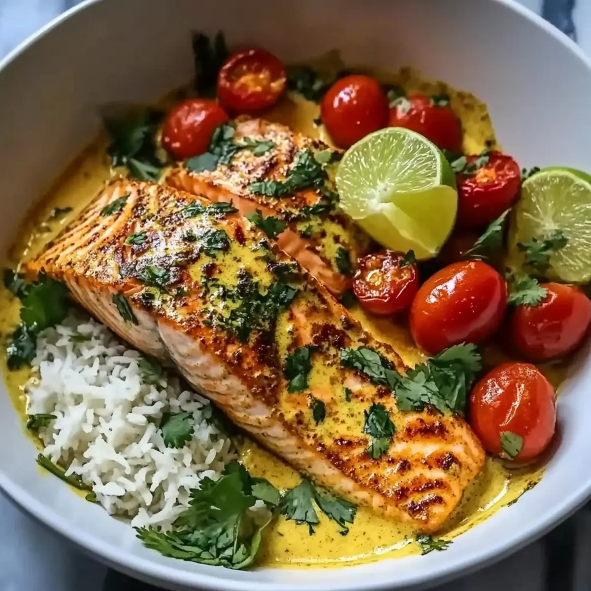 One-Pan Coconut Curry Salmon with Garlic Butter Bliss