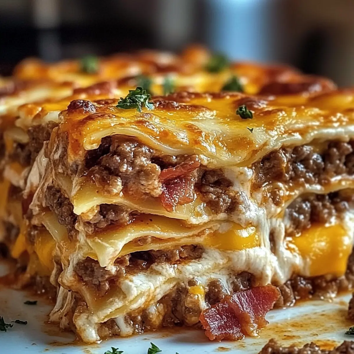 Irresistible Parmesan Garlic Bacon Cheeseburger Lasagna Recipe