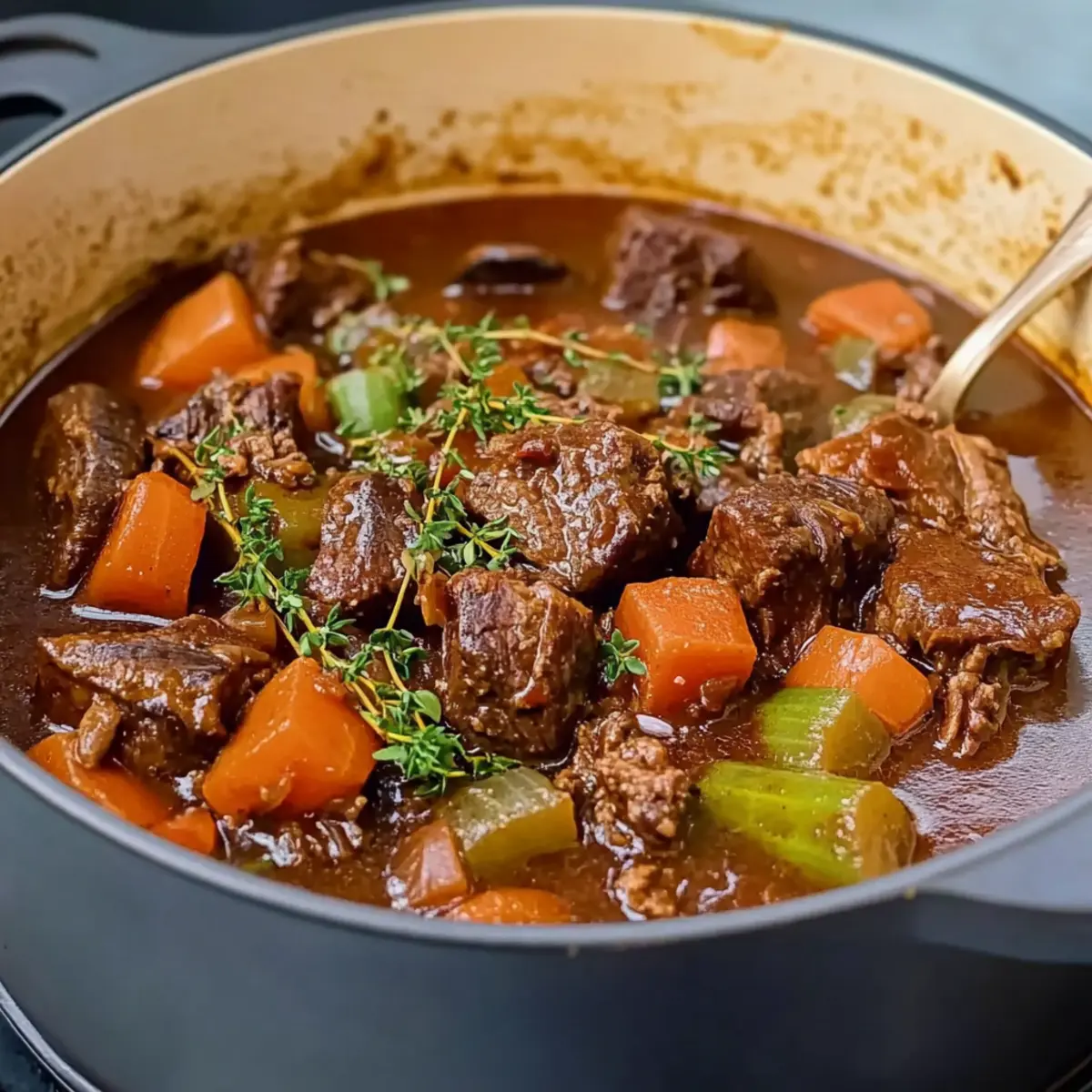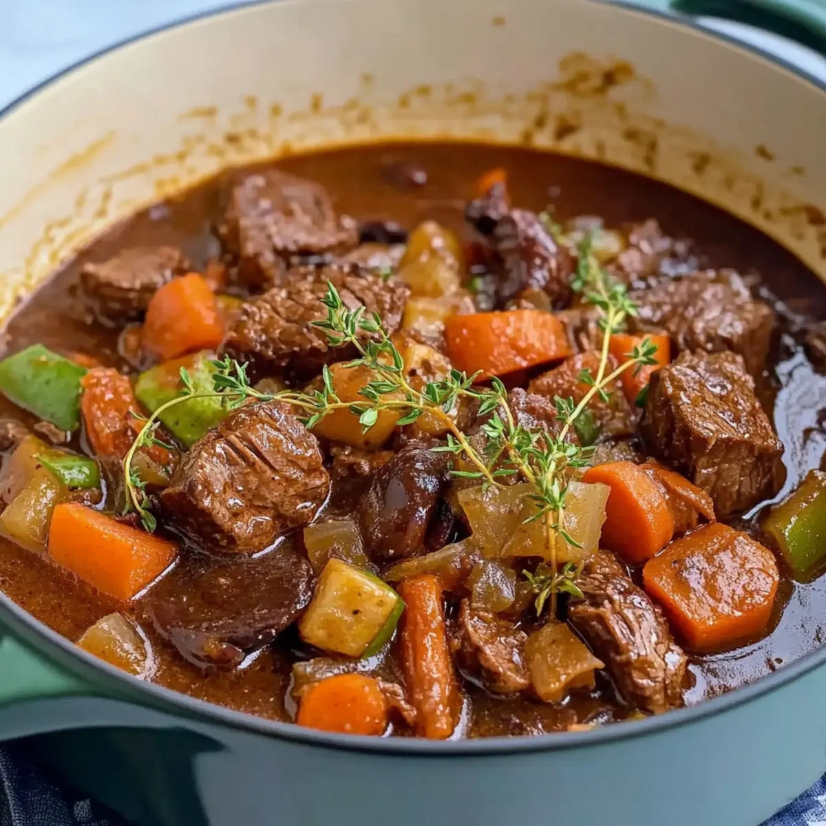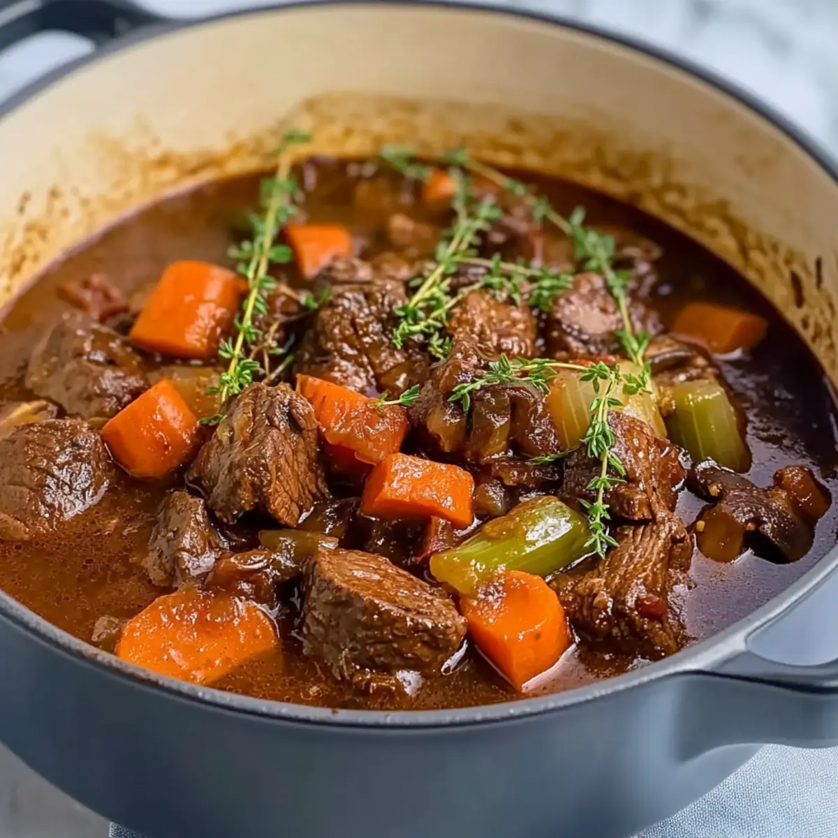 Yes, this rich and flavorful beef stew freezes wonderfully! Let it cool, then transfer it into freezer-safe containers or heavy-duty freezer bags. It can last up to 3 months. When you want to enjoy it, thaw overnight in the fridge and reheat thoroughly on the stovetop, adding a splash of broth if necessary.