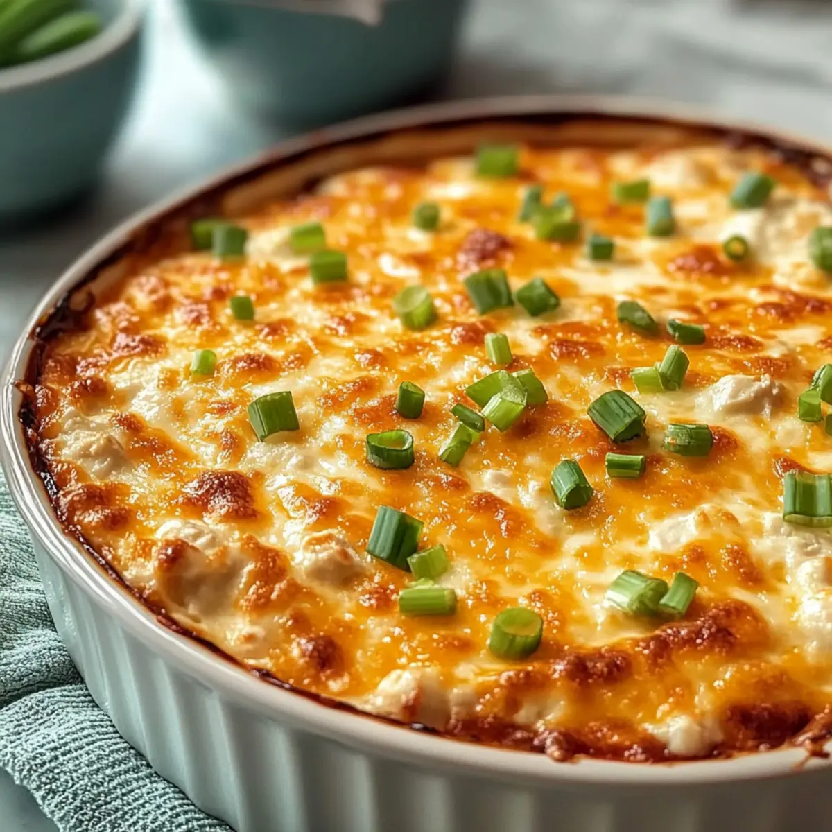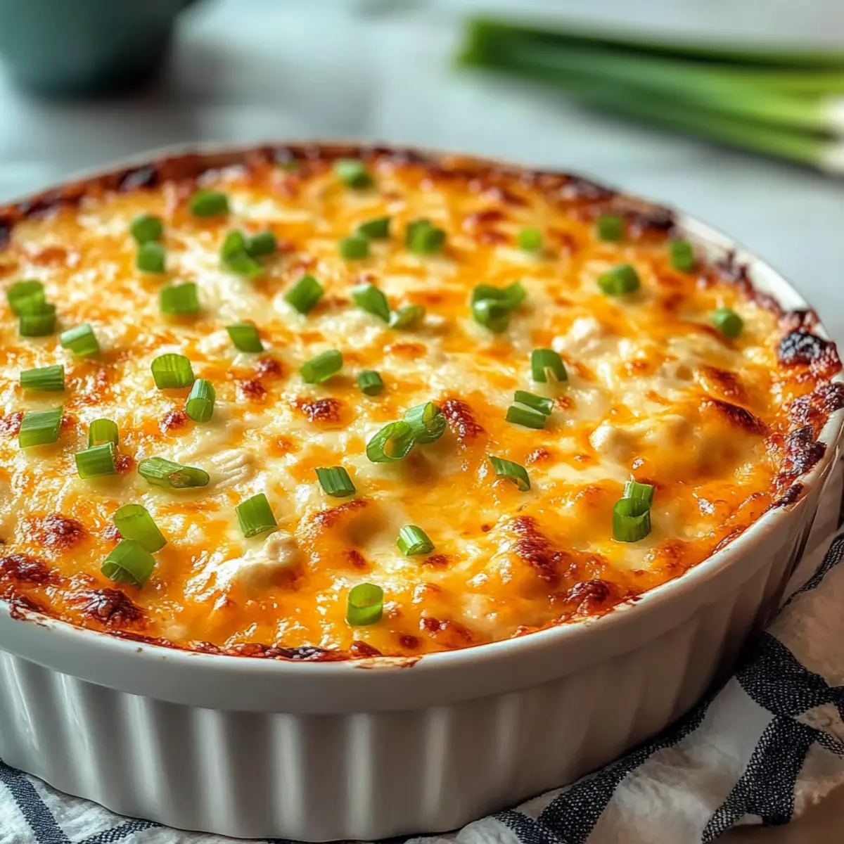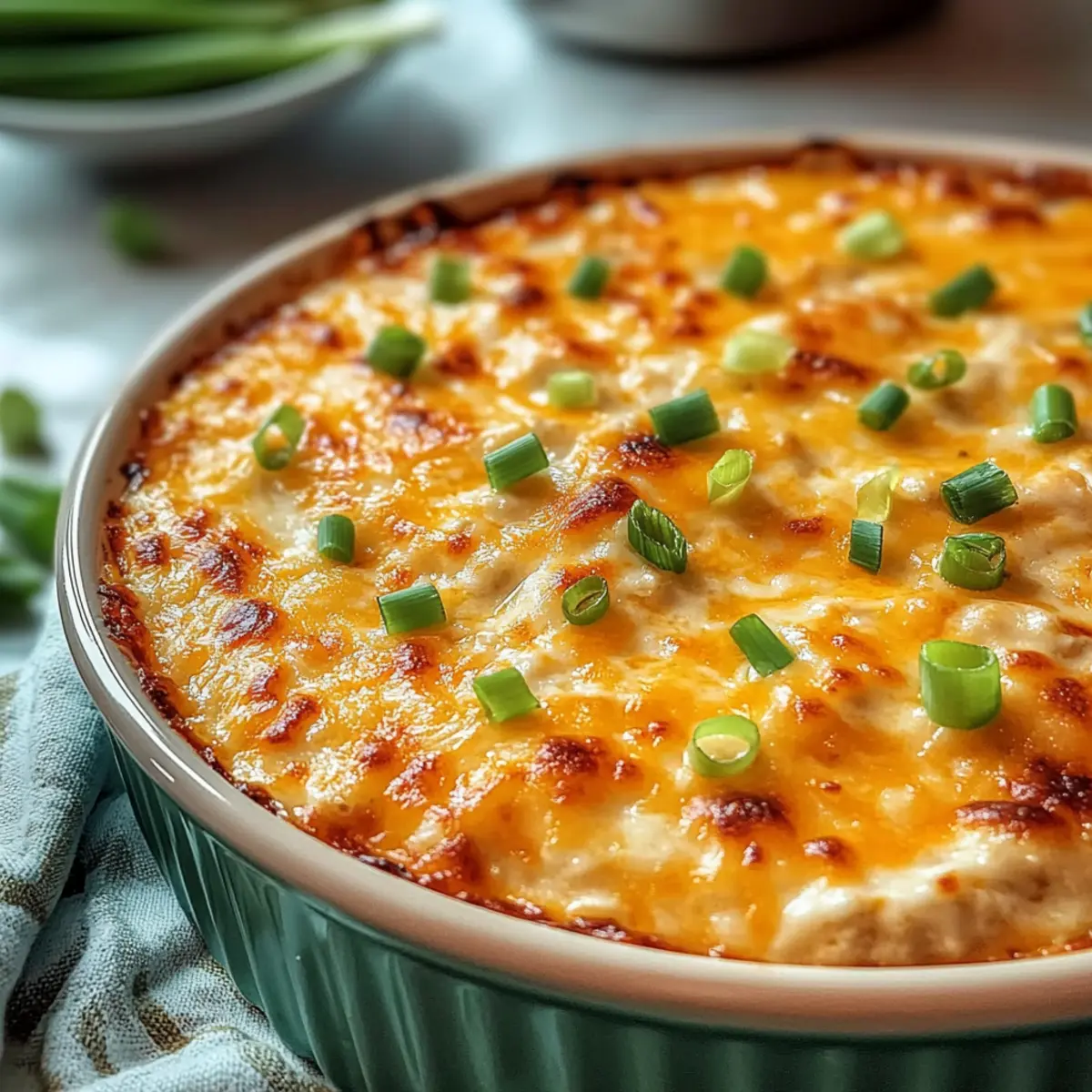 - Remove the dip from the oven and let it cool for a few minutes. Garnish with the reserved green onions and serve warm.