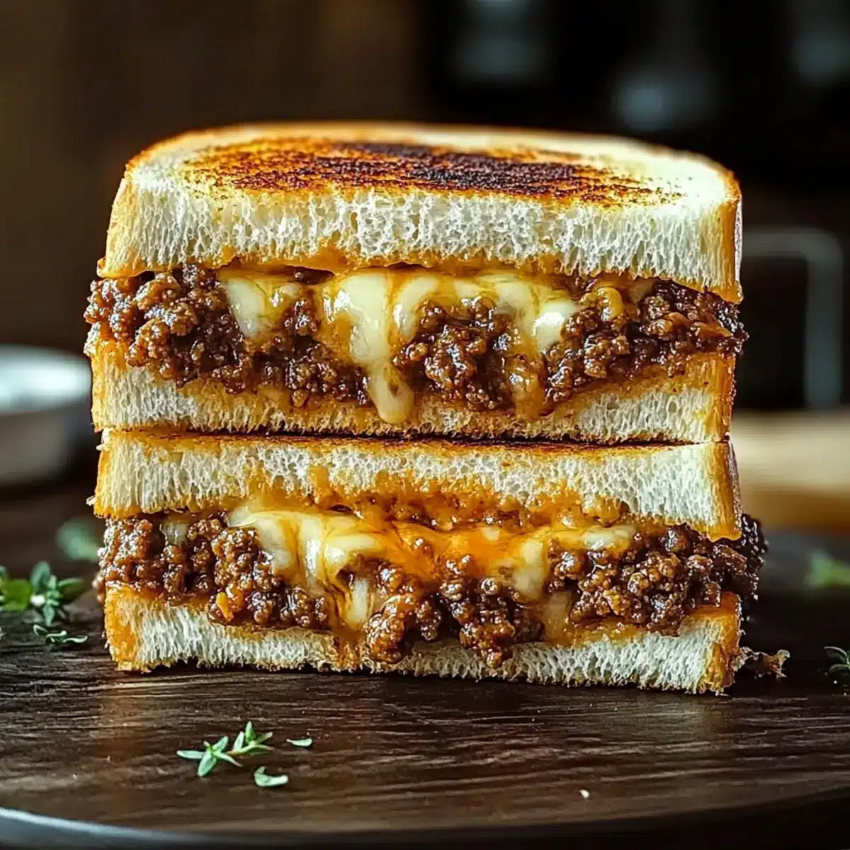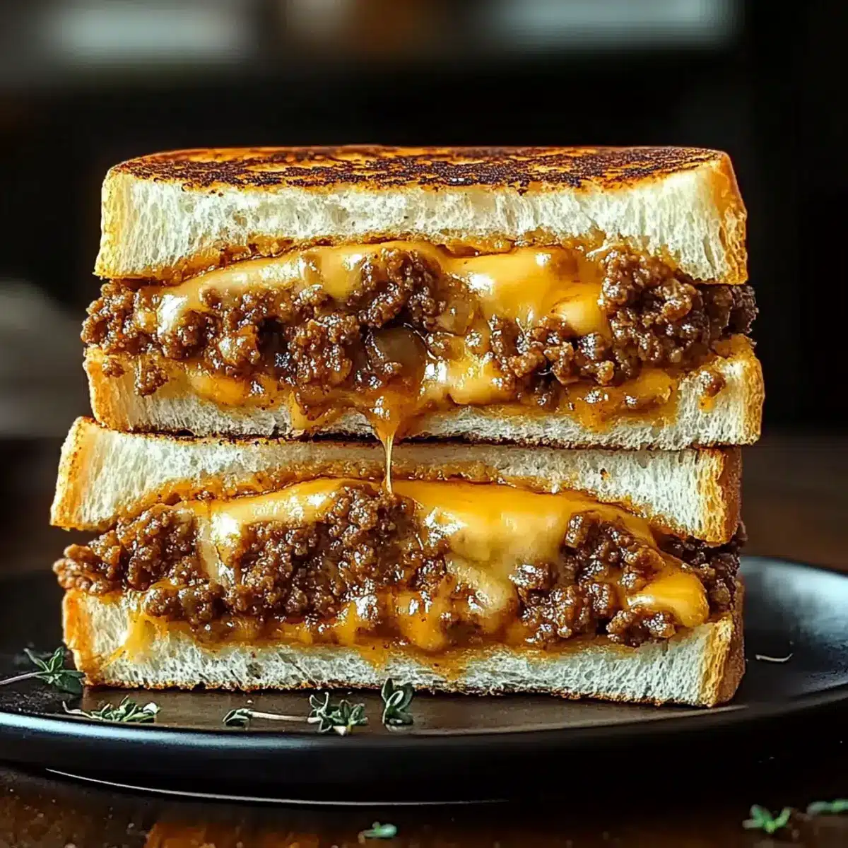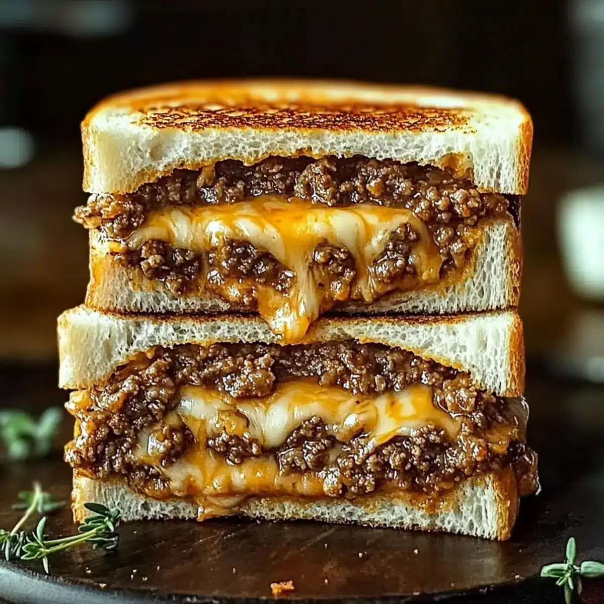 On the non-buttered side of one slice, layer half of the cheddar cheese, then spoon the savory beef mixture on top, followed by the remaining cheddar and mozzarella cheese. Top with another slice of bread, ensuring the buttered sides are facing out.