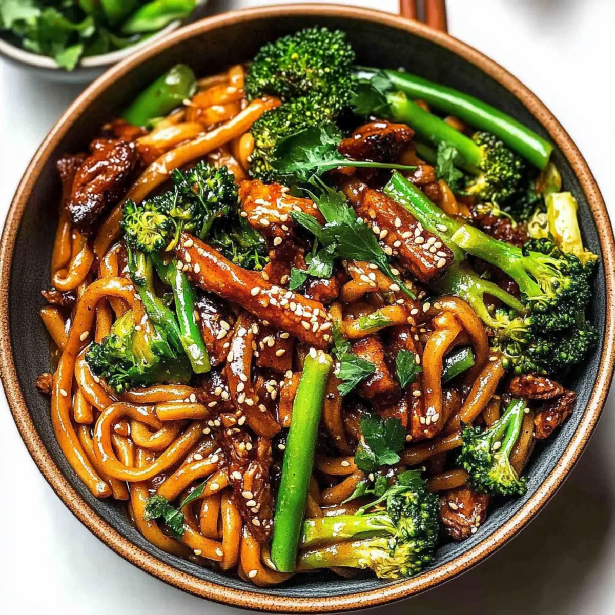 As I whisked together soy sauce and a hint of sesame oil one evening, the aroma enveloped my kitchen, transporting me to a cozy Asian restaurant where the flavors dance on your palate. That’s how I fell in love with these Vegan Sesame Yaki Udon Noodles—a dish that turned a simple weeknight meal into something special. Loaded with thick, chewy udon noodles and your choice of protein, either homemade seitan beef strips or crispy baked tofu, this recipe not only satisfies those late-night cravings but also offers a delightful balance of texture and flavor. The beauty of this dish lies in its quick prep time, making it the perfect solution for busy evenings when you want homemade goodness without the fuss. Ready to elevate your dinner game? Let’s dive into this flavorful adventure together!
