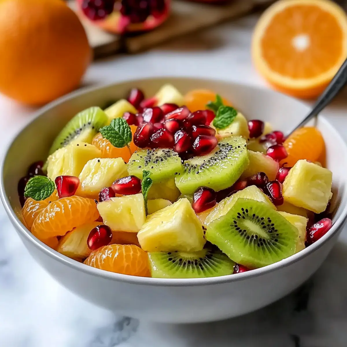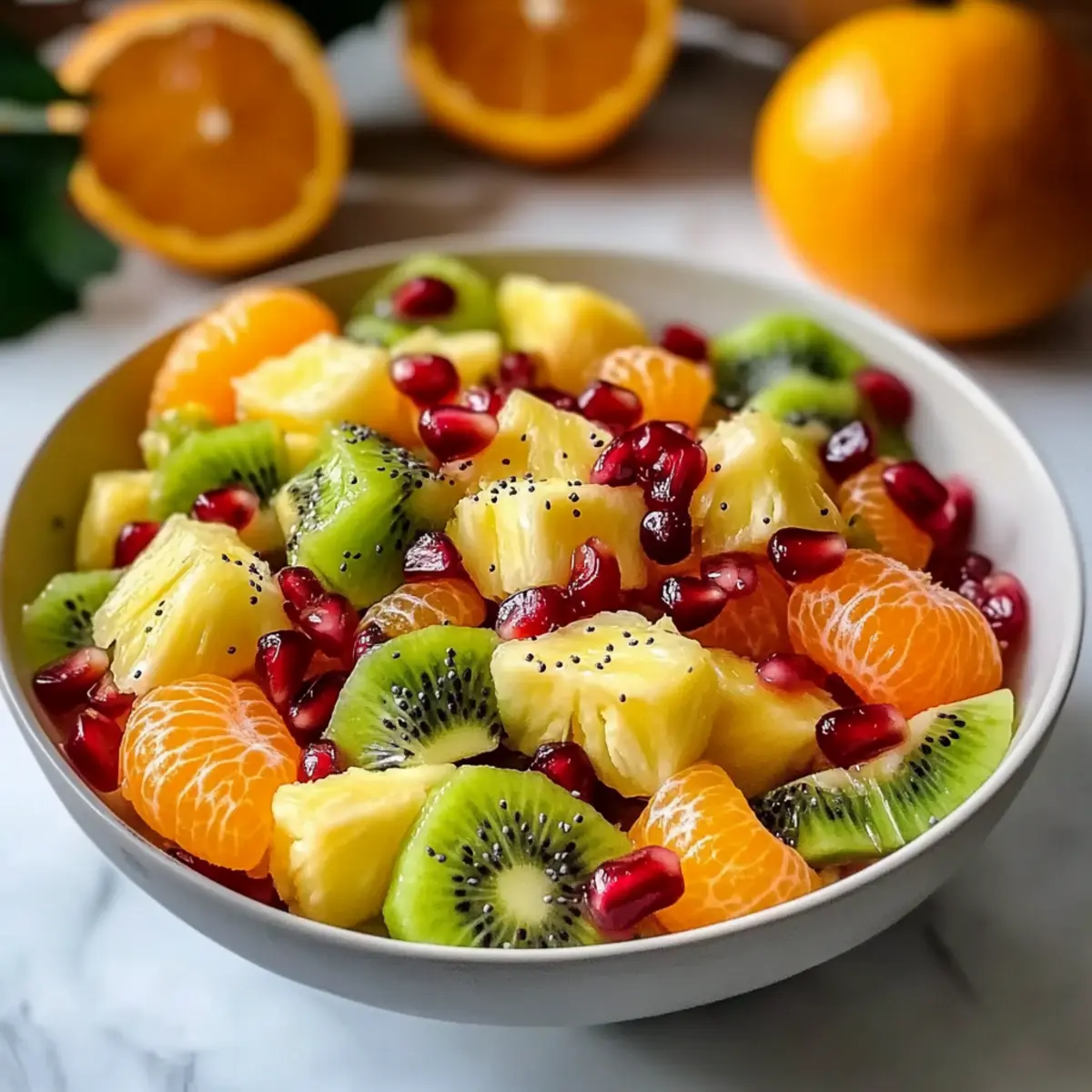 Absolutely! When selecting fruits for your Winter Fruit Salad with Poppy Seed Dressing, look for vibrant colors and a sweet fragrance. For pineapple, choose one that has a sweet smell and gives slightly when pressed. Ripe kiwis should be slightly soft to the touch, while mandarin oranges should be bright and feel heavy for their size. Pomegranate arils should appear fresh and plump, without any dark spots to ensure optimal flavor.